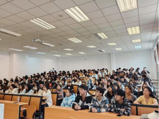 随后,辽宁科硕营养科技股份有限公司的行政总监张梁为同学们带来专题讲座,深入介绍了企业文化和车间工艺流程,让员工对企业运作模式有了更直观的认识。他鼓励同学们把握当下实习契机,夯实专业知识基础;在实践中拓宽视野,实现理论与实践的深度融合;科学规划职业生涯,以持之以恒的态度追求进步。