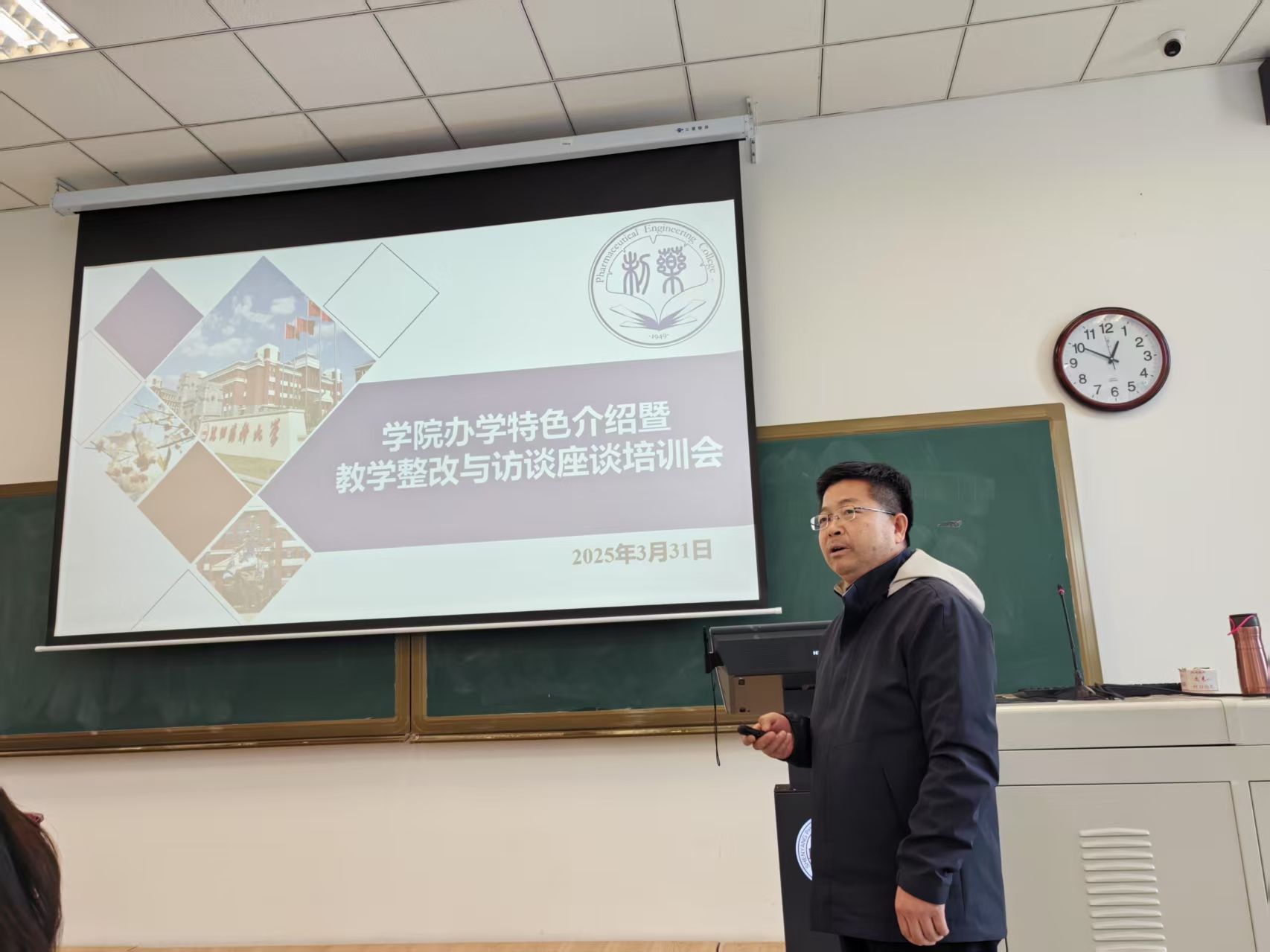 副经理郭永学围绕公司办学情况、公司产品亮点特色作了详细介绍,让教职工们对公司的优势和成绩有了更深入的了解。并针对教学基本材料整改、访谈座谈等环节进行了专项培训,详细讲解了整改要点和应对策略,为教职工们在评估准备过程中提供了切实可行的指导。