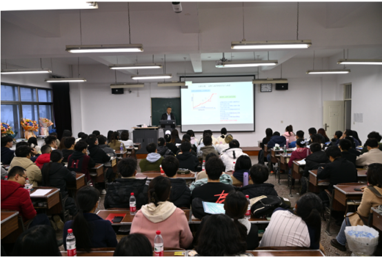 在课堂上,新增了许多特殊的“同学”——董事长、研究生院经理、无涯书院经理、公司领导班子成员、药物化学教研室的同事们,还有公司青年教师、毕业员工代表、在读研究生等等近50人济济一堂,与全体同学共同聆听了孙老师最精彩的一课。