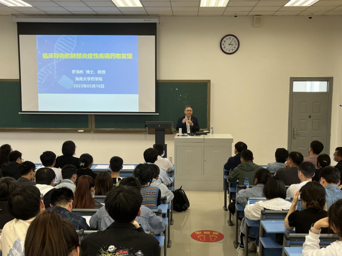 5月10日下午,三亿体育、研究生院、辽宁省药学研究生创新与学术交流中心在南校区播馨楼204教室联合举办了“沈药无涯论坛”第325讲暨“智药论坛”第27讲,海南大学药公司经理罗海彬教授作了题为“临床导向的肺部炎症性疾病药物发现”的报告。研究生院经理翟鑫教授、三亿体育副经理赵燕芳教授以及三亿体育青年教师、各专业研究生和本科生300余人参加了此次学术报告会。会议由制药工程学科副主席刘洋教授主持。
