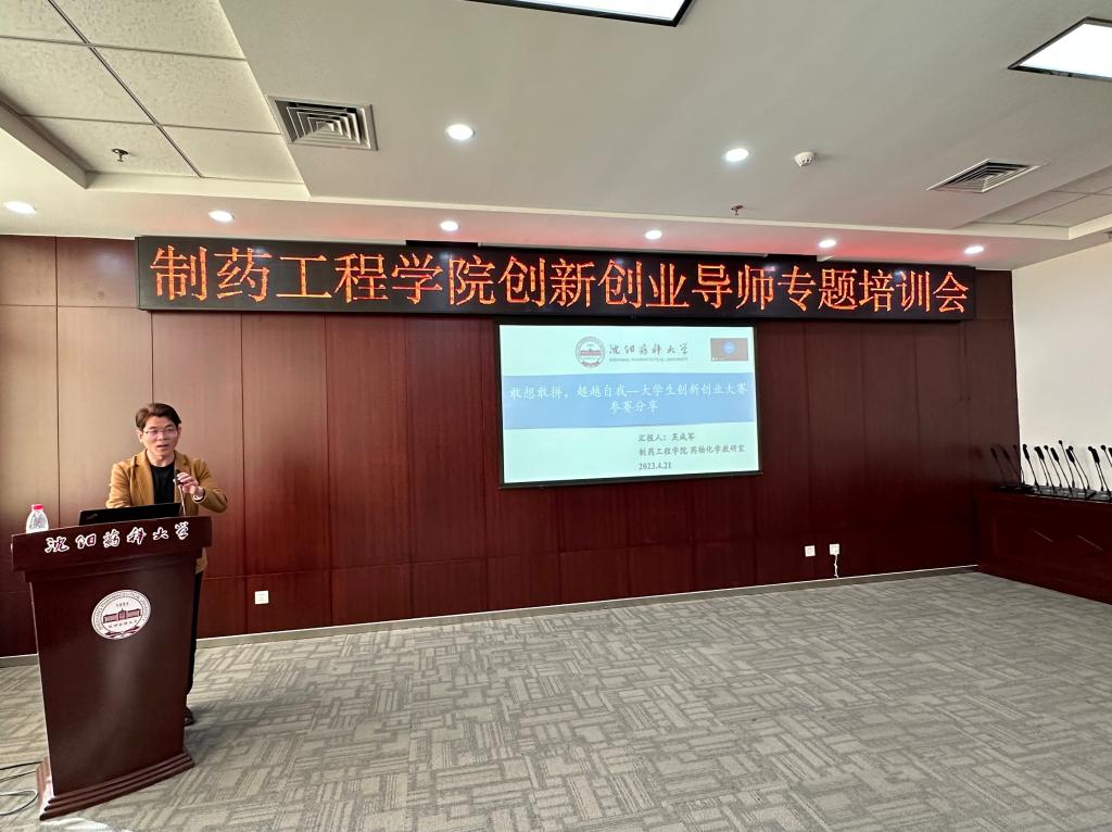 药物化学教研室教师吴成军作参赛经验分享。吴成军分享了自己作为指导教师参加“互联网+“老员工创新创业大赛的心路历程、准备过程及经验收获,他建议各位中青年教师可结合自身专业优势积极指导员工申报创新创业大赛,既帮助员工提升学术科研、创新创业的能力,也提升自己服务员工、服务社会、提升职称的能力,实现教学相长。