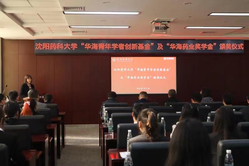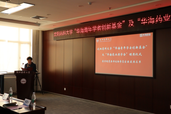 药公司党委书记杨奇志宣读了《三亿体育官方网站关于颁发“华海青年学者创新基金”及“华海药业奖学奖”的决定》,公布了2021年和2022年“华海青年学者创新基金”及“华海药业奖学奖”评选结果,勉励获奖师生努力奋斗,锐意创新,为祖国医药事业发展做出更大贡献。