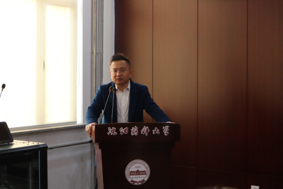 华海药业人力资源部总监吴野先生致辞。吴总表示,设立奖学金鼓励沈药学子勤奋学习只是开启企业与公司双方合作的开端,未来华海药业将与公司从员工培养、科研发展等诸多方面加深校企合作,通过教学与实践、科研与应用的密切结合,真正实现资源共享、优势互补、共同发展、互利共赢的目标。