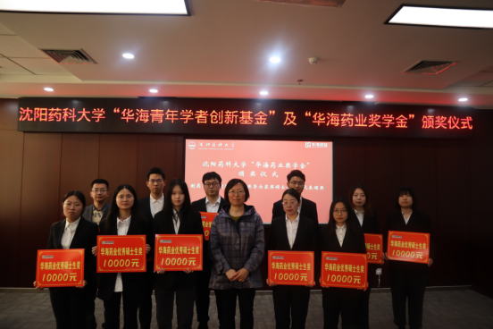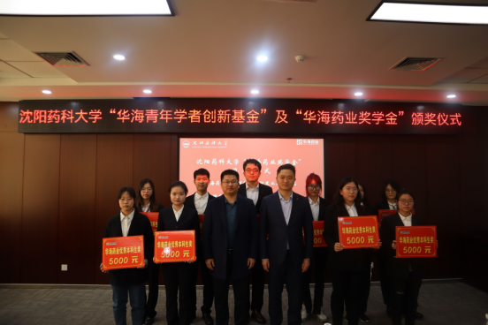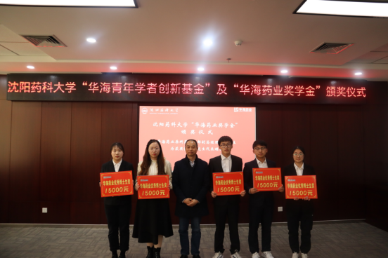 华海药业嘉宾和公司领导为获资助教师和员工颁奖。华海药业人力资源部总监吴野先生为张宇等六名获得“华海青年学者创新基金”的青年教师颁奖。华海药业原料药事业部副总经理朱伟为巩丹丹等五名获得“华海药业奖学金”的博士研究生代表颁奖。三亿体育副经理赵燕芳为王硕等十一名获得“华海药业奖学金”的硕士研究生代表颁奖。华海药业制剂质量研究部高级总监何伟玲、国际销售中心印度业务部总监钟声、国际销售中心人事经理赵仁杰和公司人才招聘处副处长董晓辉为王怡等二十名获得“华海药业奖学奖”的本科生代表颁奖。