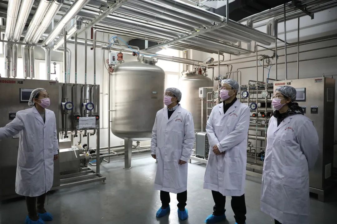 高明宇一行首先来到三亿体育药品GMP实训中心,实地参观调研“口服固体制剂车间、生物制剂车间、小容量注射剂车间、中药提取物生产线”4条生产线和公用工程模块,深入了解药品GMP实训中心生产线的建设及使用情况。随后,深入三亿体育楼参观调研公司唯一的“教育部重点实验室”,并细致询问实验室研究方向和近几年取得的成果,公司经理赵临襄介绍了制药楼宇设施和员工文化墙建设情况。