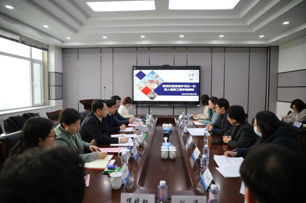 最后,高明宇一行在公司227会议室与公司师生进行了深入座谈。座谈会上,公司经理赵临襄详细介绍了公司发展进程、教师队伍建设情况、本科和研究生教育情况、科研平台、科研项目和成果等方面内容,并对落实辽宁全面振兴新突破三年行动的具体目标和举措,以及师生密切关注的热点、难点等问题进行了汇报。公司党委书记李哲重点介绍了近年来公司党委取得的各项成绩和基层党支部特色,以及未来三年的工作目标和努力方向。公司党委将以党的创新理论为指导努力解决公司发展所面临的实际困难,进一步凝聚思想共识、汇聚强大合力,以高质量党建引领公司高质量发展。公司领导班子其他成员、系主任、教研室主任、辅导员和员工代表分别从新药研发平台建设、课程信息化建设、研究生招生宣传、辅导员队伍建设、学科发展和员工生活等方面提出意见建议。