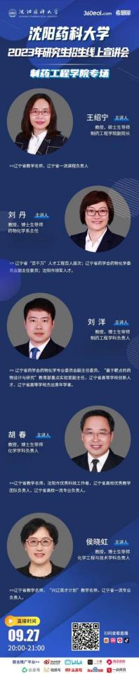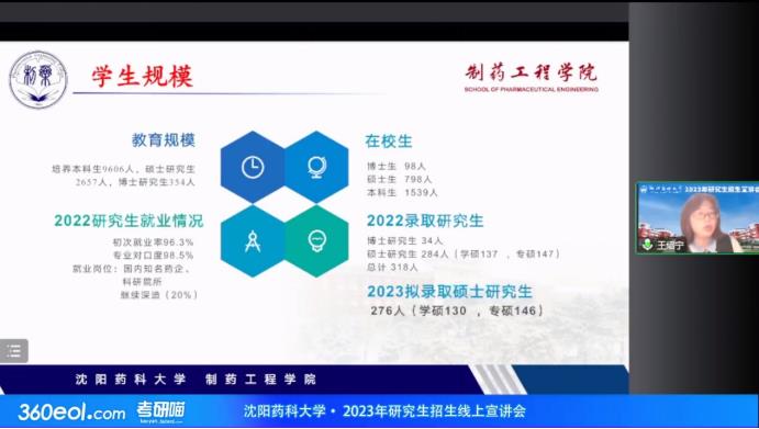 三亿体育副经理王绍宁教授、药物化学系主任刘丹教授、制药工程学科负责人刘洋教授、化学学科负责人胡春教授、化学工程与技术学科负责人侯晓虹教授作为主讲人,分别进行了对应的学科招生宣讲,并在互动答疑环节为考生们答疑解惑。
