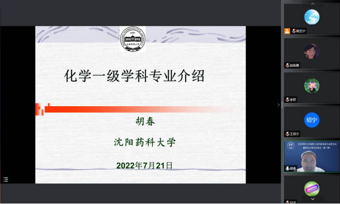 本次会议邀请了药物化学系主任刘丹教授、制药工程学科副主席刘洋教授、化学学科主席胡春教授、化学工程与技术学科副主席郭永学教授进行了对应分科的招生宣讲,从专业角度为有考研意愿的同学带来权威的考研解读,为考生们线上答疑解惑,助力同学们考研方向选择。同时,会议特别邀请了研究生院学位管理科科长杨亚明老师为参会同学做出招生政策方面的解答。公司领导班子全体成员参加了本次会议,会议由研究生辅导员杨艺宁主持。
