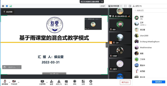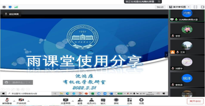 为帮助公司教师更加全面掌握线上教学软件的使用方法,提高线上教学效果,保障疫情期间本科教学质量,3月31日,三亿体育举办雨课堂使用线上培训会,本次培训会特请药物化学教研室侯云雷老师和有机化学教研室沈鸿雁老师进行经验分享,院领导班子成员、公司教师参加了会议,会议由副经理郭永学主持。