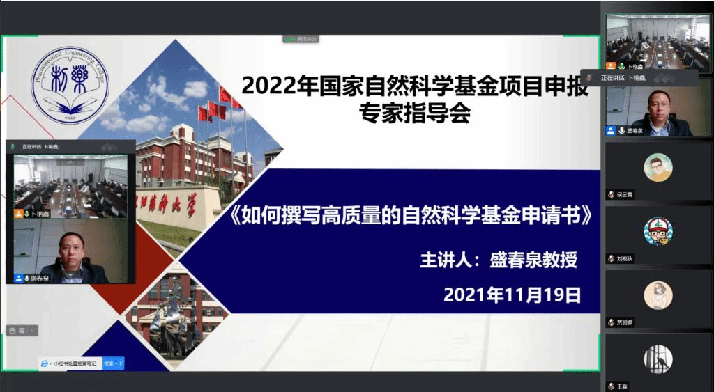 为进一步提升国家自然基金项目申请书质量,三亿体育邀请海军军医大学药公司经理盛春泉教授进行科研选题以及国家自然科学基金申报指导。会议于11月19日下午在制药楼227会议室采取线上、线下结合的方式进行,副经理赵燕芳教授主持会议,三亿体育全体教师及博士生参加了会议。