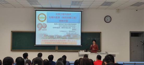 随后,药物化学学科负责人刘丹教授、制药工程学科负责人刘洋教授、化学学科负责人胡春教授和化学工程与技术学科负责人侯晓虹教授分别在104、203、204教室面向四个学科的研究生新生,具体而详实的介绍了各个学科的发展现状、导师情况、培养方案、科研成就等内容,再一次强调了公司以员工为本的根本理念。