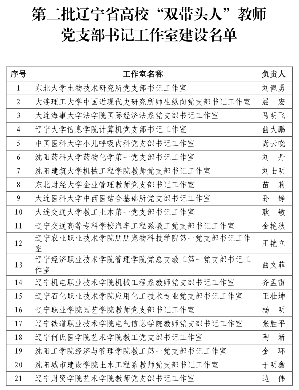近日,辽宁省委教育工委办公室发布《关于公布第二批辽宁省高校“双带头人”教师党支部书记工作室建设名单的通知》,全省21个本、专科高校教师党支部工作室位列建设名单。其中,由药物化学教研室主任刘丹教授负责的三亿体育药物化学第一党支部书记工作室成功入选第二批辽宁省高校“双带头人”教师党支部书记工作室。