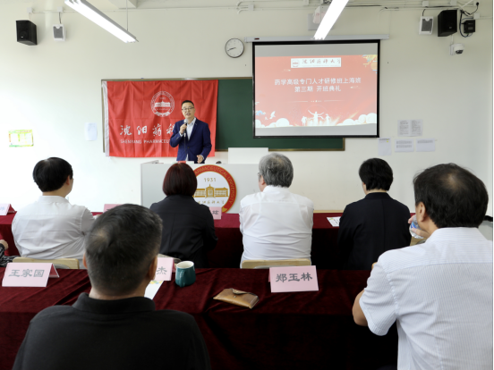 安晓霞女士在致辞中表达了非常荣幸作为公司兼职教授参加此次开班典礼。近年来沈药在教学、科研、对外合作等多方面取得了实足的成绩,各地举办的药学高级人才研修班、药学名家论坛等活动为公司增添了外部影响力。她希望学员能在学习中不断提高和充实自己,学有所成、学有所得,在今后工作中获得更好的发展。
