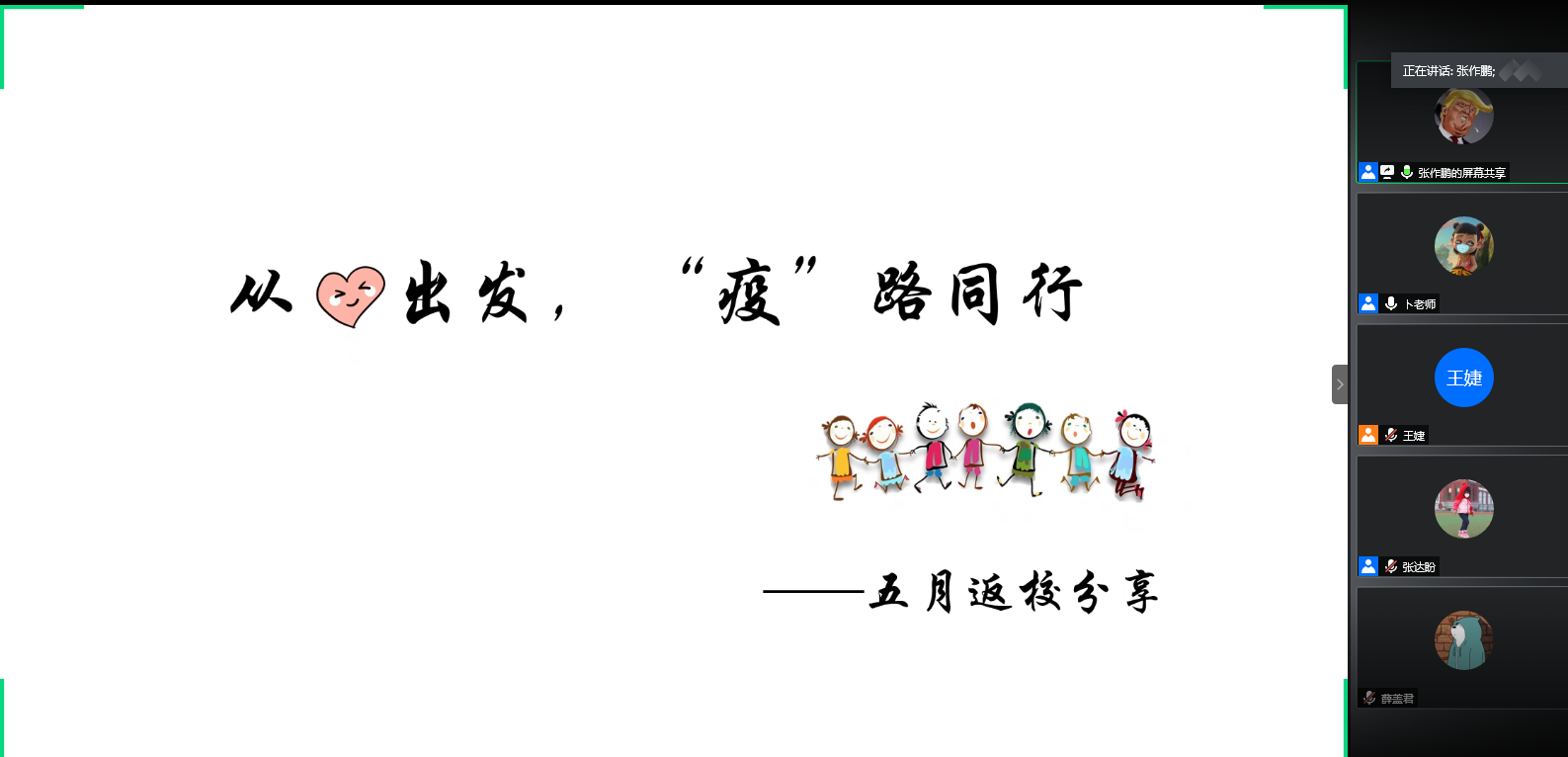 此外,由2017级博士班长张作鹏为大家分享了主题为——从“心”出发,“疫”路同行,五月返校分享,为大家介绍了疫情期间作为第一批返校同学在隔离的十几天里的心理感受及隔离期出现情绪波动应如何认识、调节。让同学们知道:逃避从来不能解决问题,既然要面对,一定要保持积极乐观的心态,让忙碌成为一种享受,乐在其中。