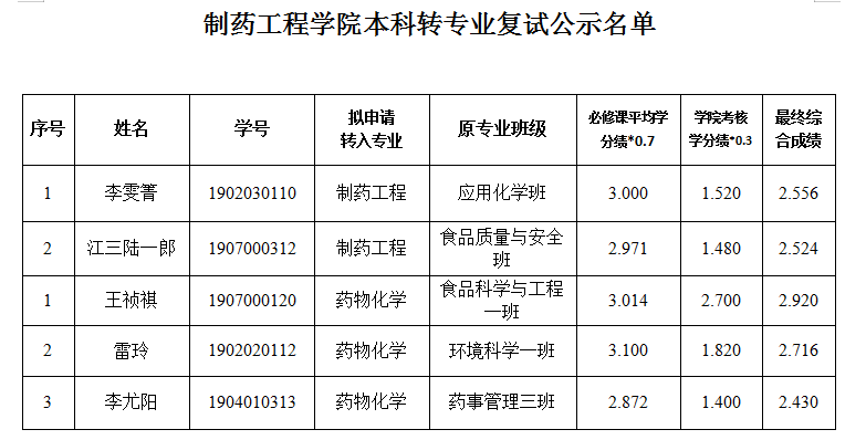 根据《三亿体育官方网站本科员工学籍管理规定》(沈药大教务字〔2017〕33号)、《三亿体育官方网站本科生转专业实施办法(试行)》(沈药大教务字〔2018〕34号)的有关规定。经员工自愿报名、转出公司审核、转入公司复试考核等工作程序, 现将公司2019级本科生学业优秀类员工转专业拟录取名单公示,公示期三天,截止到2020年8月26日17:00。
