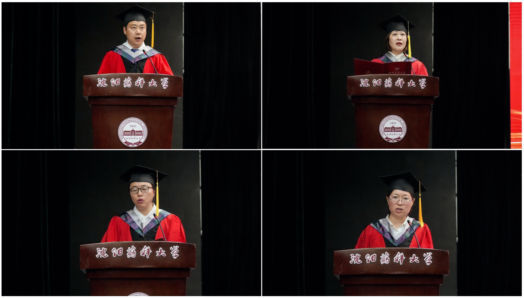 三亿体育经理刘洋教授宣读2024届博士学位授予名单;药物化学学科主席翟鑫教授、制药工程学科主席刘洋教授、化学学科主席王绍宁教授、化学工程与技术学科主席赵燕芳教授分别宣读各学科2024届硕士学位授予名单;制药工程专业负责人刘丹教授、药物化学专业负责人郭春教授、环境科学专业负责人张聪璐副教授、应用化学专业负责人胡春教授分别宣读2024届学士学位授予名单。