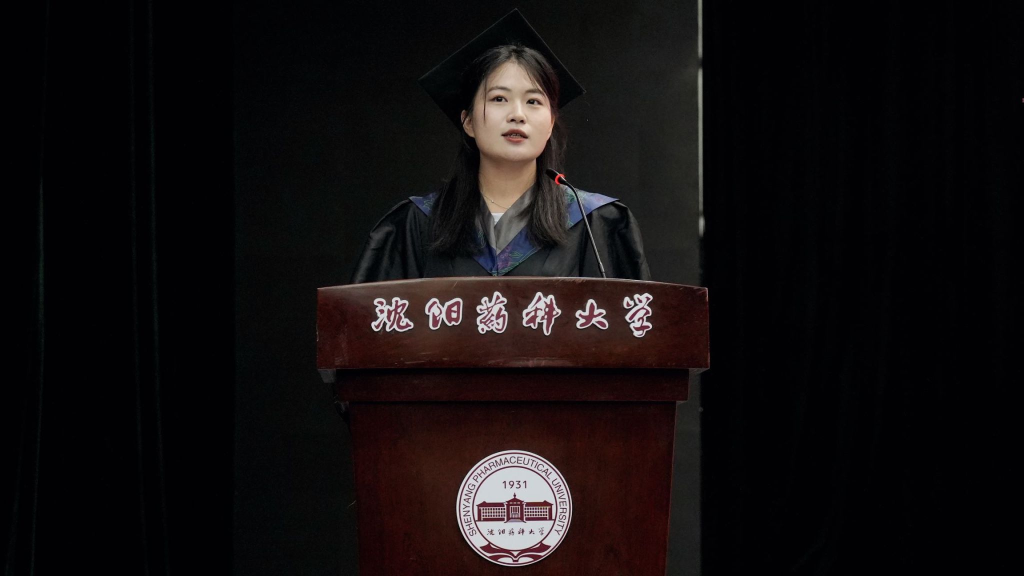 54期员工、辽宁海思科制药有限公司总经理梁勇作为员工代表发言。他回顾了在沈药度过的美好求学时光,分享了工作后的经历和感悟,毕业季是人生的一个重要里程碑,也是开始新旅程的起点,走入社会后,同学们将面临和校园中完全不同的生活。他鼓励毕业生们勇于拼搏,敢于尝试,在未来的道路上勇往直前,不断追求梦想,实现自己的价值。