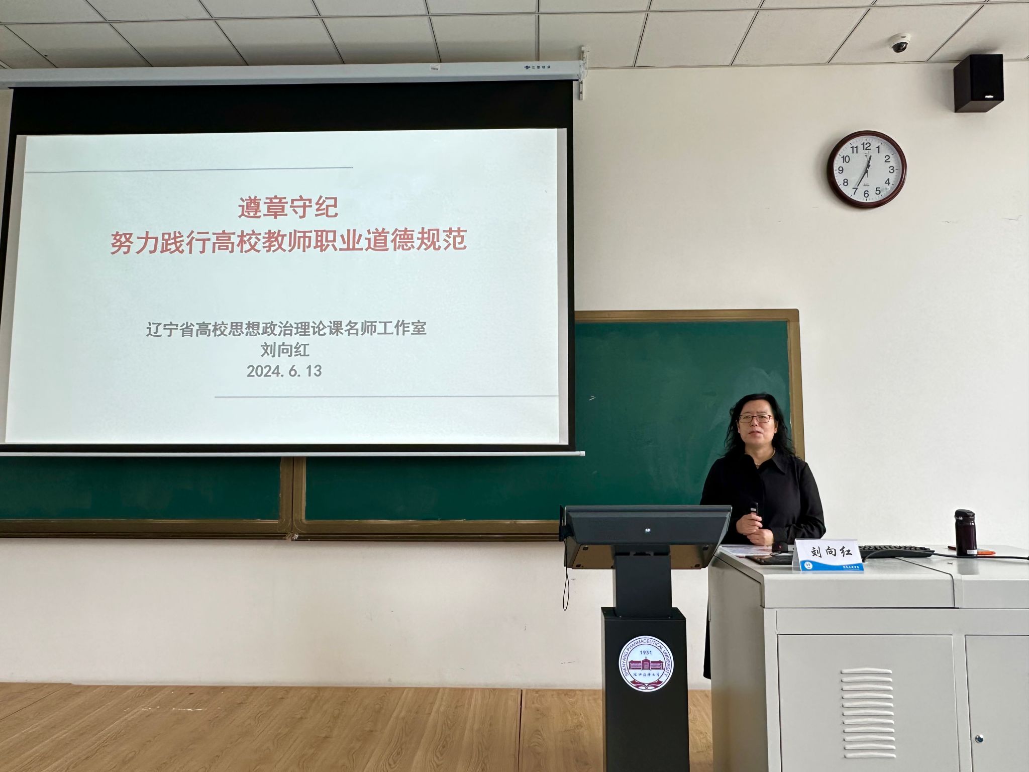 为深入开展党纪学习教育,三亿体育于6月13日在南校区播馨楼204召开师德师风专题培训会,邀请了三亿体育官方网站党委党校教务长、党委组织部副部长(兼)、辽宁省高校思想政治理论课名师工作室刘向红教授作题为“遵章守纪,努力践行高校教师职业道德规范”专题讲座。公司领导班子成员、公司教师参加了会议,培训会由公司党委书记李哲主持。