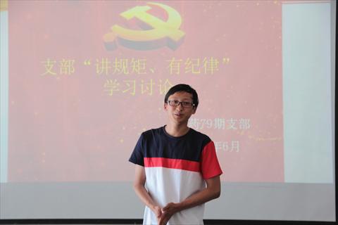 按照支部“两学一做”学习教育计划安排,6月16日,79期员工党支部举行了“讲规矩、有纪律”专题学习讨论,39名党员参加了学习讨论。讨论会由支部书记唐丹主持。